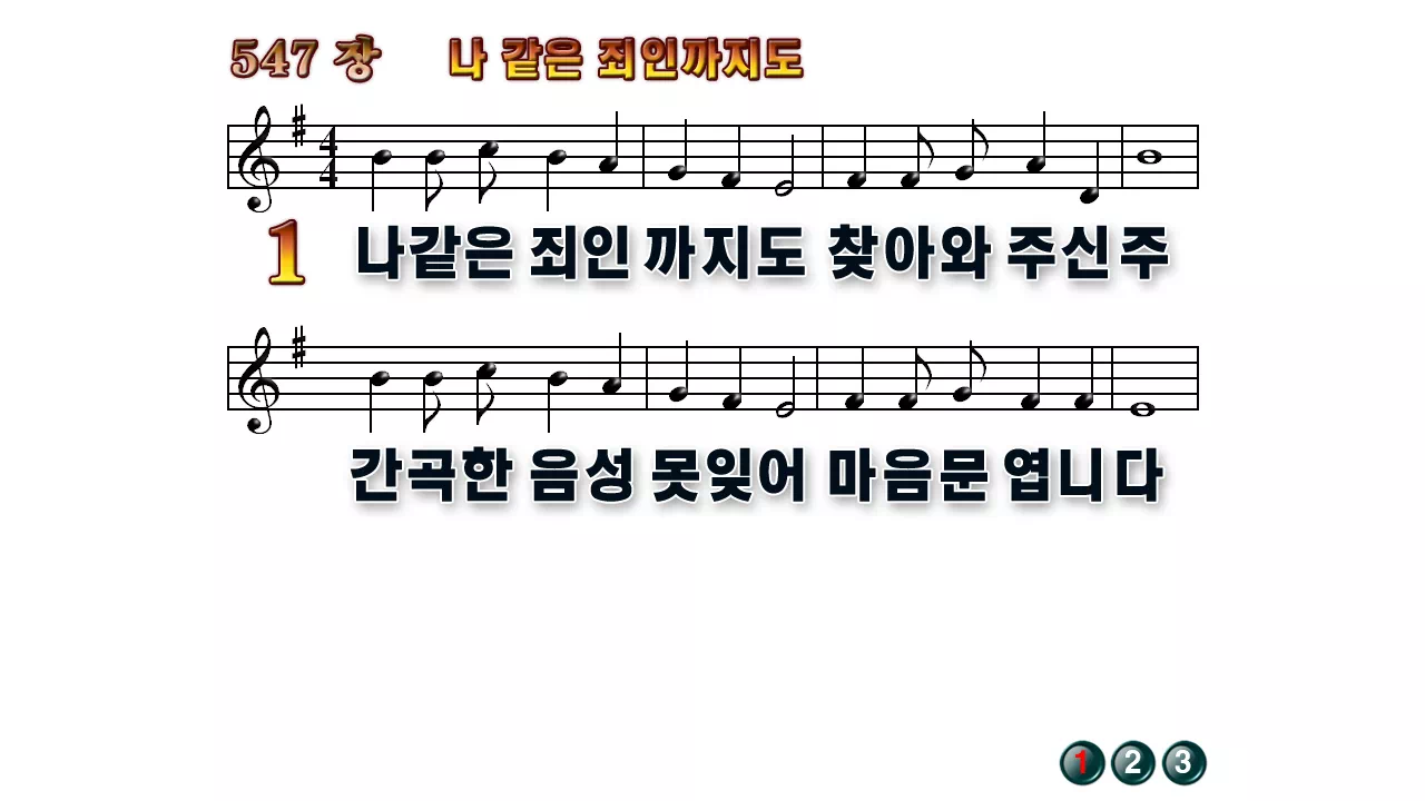 새찬송가 '547장 나같은 죄인까지도'의 16:9 와이드버전으로 편집된 배경 없는 새찬송가 PPT악보입니다.