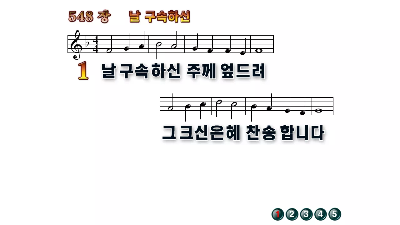 새찬송가 '548장 날 구속하신'의 16:9 와이드버전으로 편집된 배경 없는 새찬송가 PPT악보입니다.