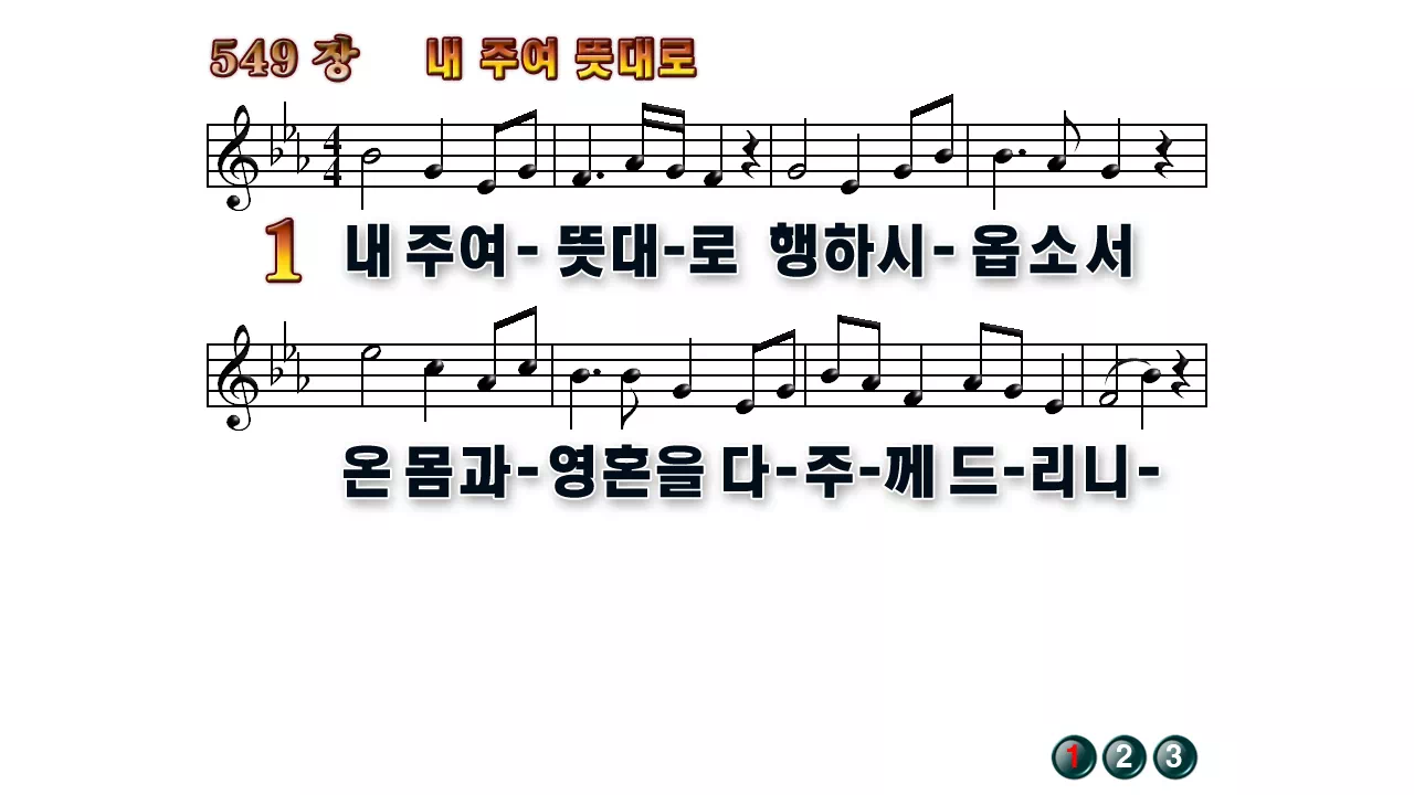새찬송가 '549장 내 주여 뜻대로'16:9 와이드버전으로 편집된 배경 없는 새찬송가 PPT악보입니다.