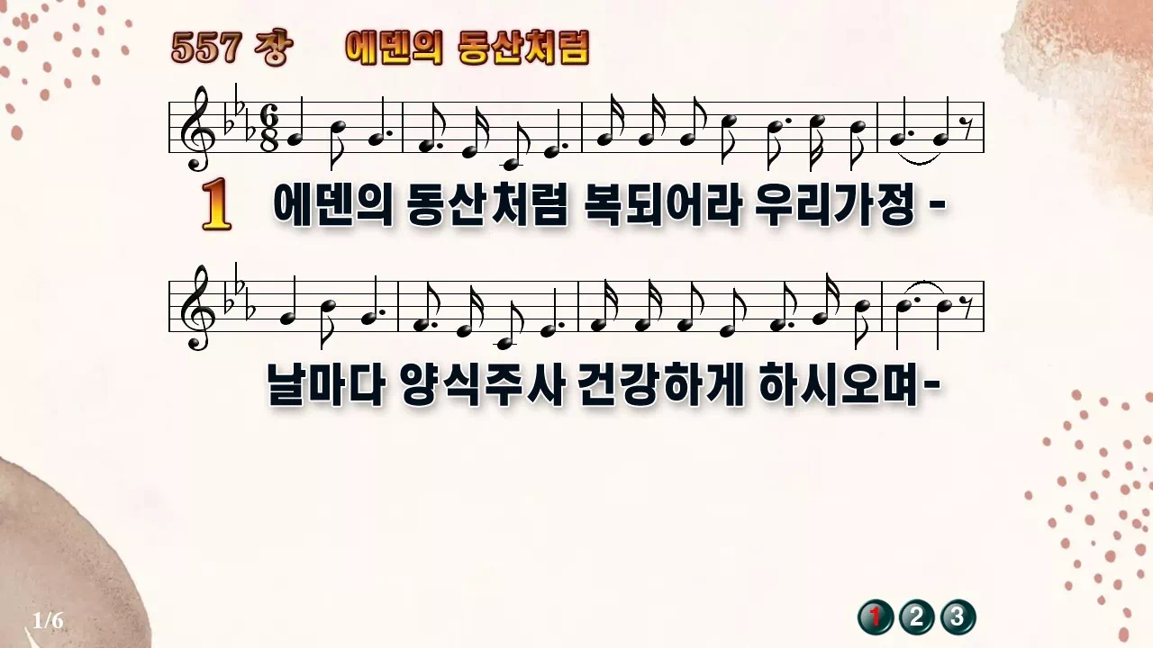 새찬송가 PPT: 557장 에덴의 동산처럼(16:9/가사/PPT악보/다운로드/배경O)