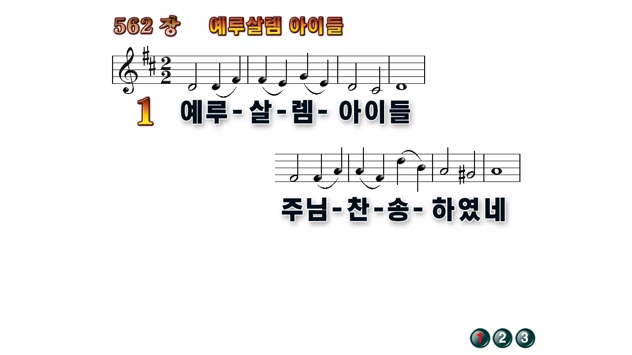새찬송가 '562장 예루살렘 아이들'16:9 와이드버전으로 편집된 배경 없는 새찬송가 PPT악보입니다.