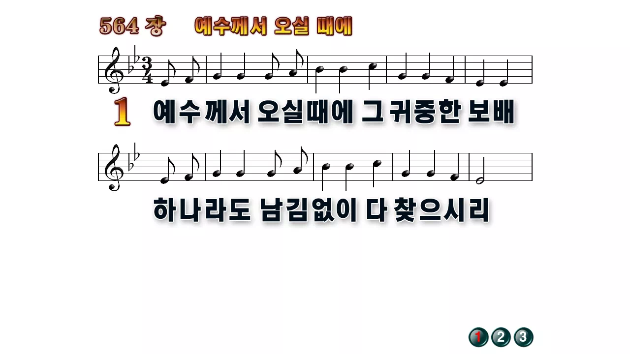 새찬송가 PPT: 564장 예수께서 오실때에(16:9/가사/PPT악보/다운로드/배경X)