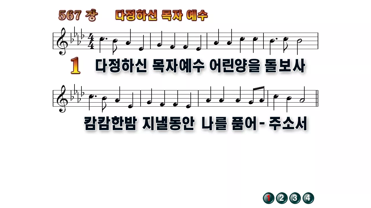새찬송가 '567장 다정하신 목자 예수'16:9 와이드버전으로 편집된 배경 없는 새찬송가 PPT악보입니다.