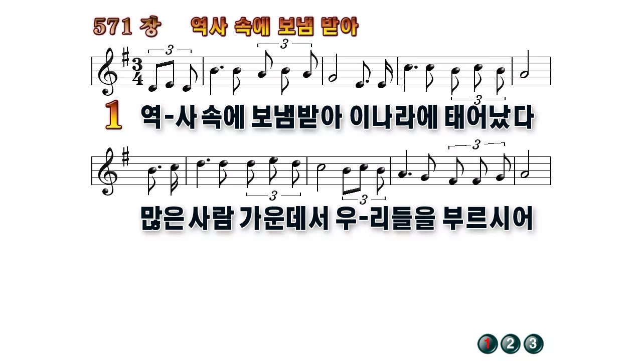 새찬송가 '571장 역사속에 보냄받아'16:9 와이드버전으로 편집된 배경 없는 새찬송가 PPT악보입니다.