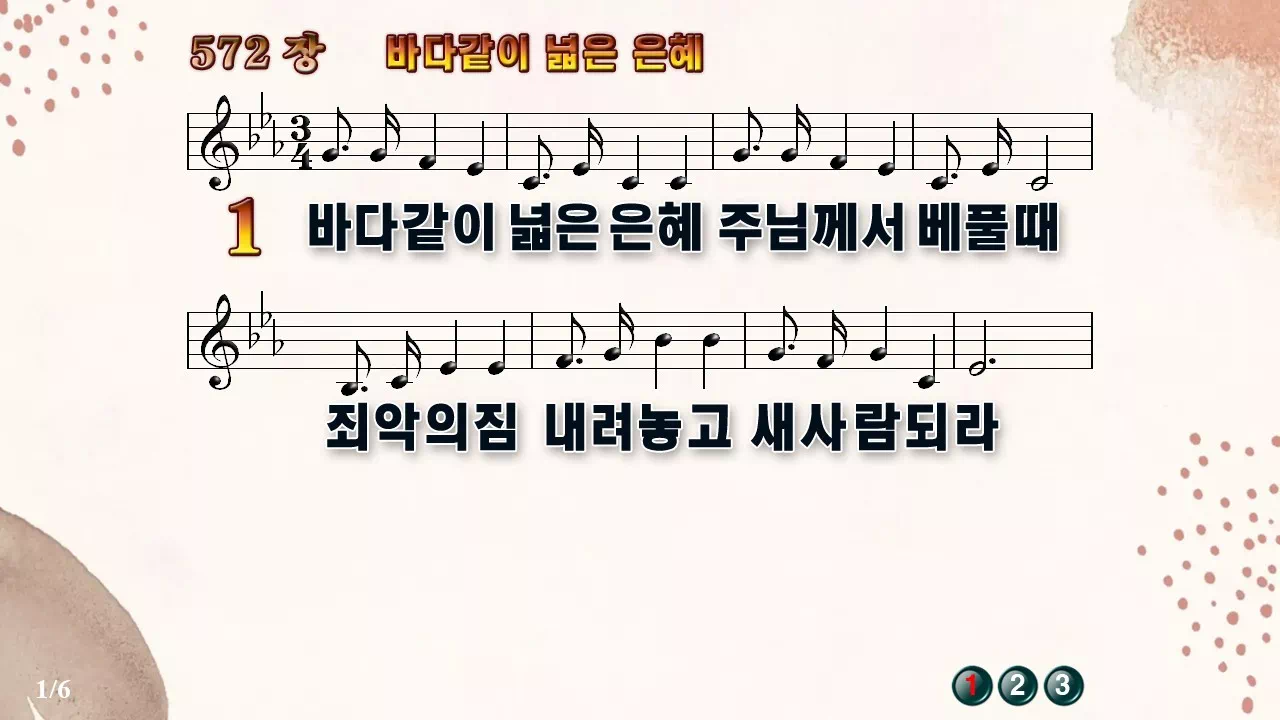 새찬송가 PPT: 572장 바다같이 넓은 은혜(16:9/가사/PPT악보/다운로드/배경O)