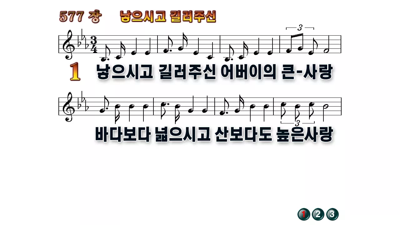 새찬송가 PPT: 577장 낳으시고 길러주신(16:9/가사/PPT악보/다운로드/배경X)