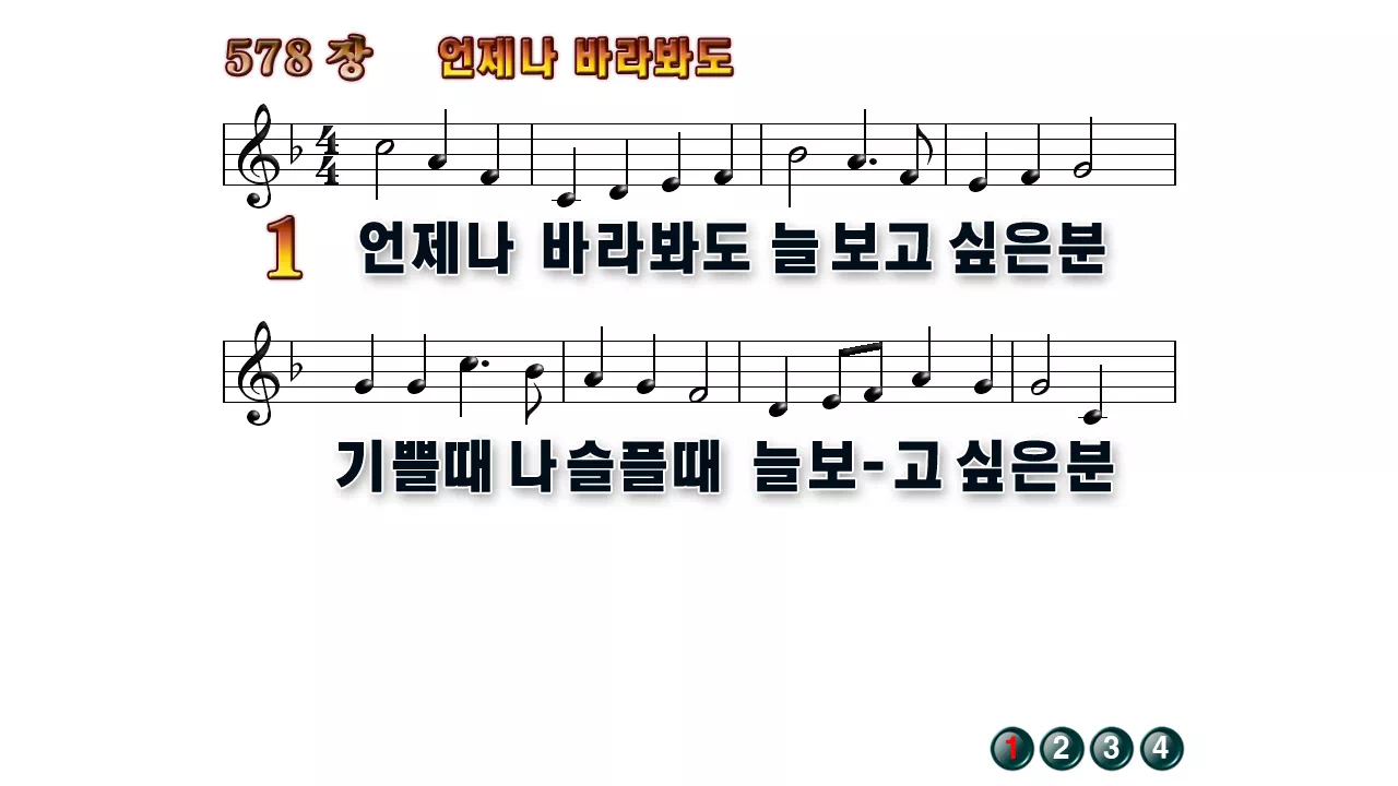 새찬송가 '578장 언제나 바라봐도'16:9 와이드버전으로 편집된 배경 없는 새찬송가 PPT악보입니다.