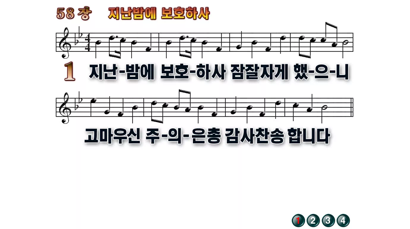새찬송가 '58장 지난밤에 보호하사'의 16:9 와이드버전으로 편집된 배경 없는 새찬송가 PPT악보입니다.