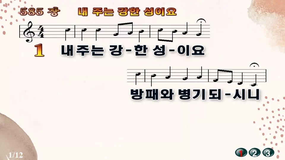 새찬송가 PPT: 585장 내주는 강한 성이요(16:9/가사/PPT악보/다운로드/배경O)