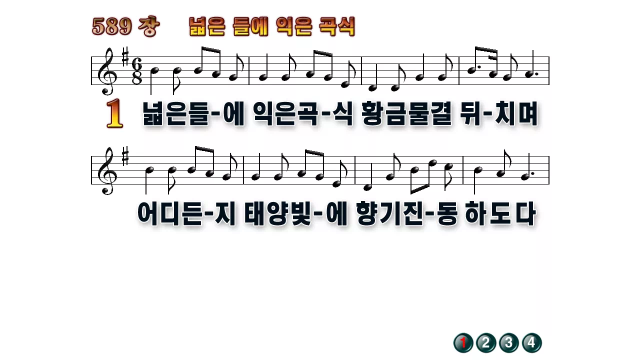 새찬송가 '589장 넓은 들에 익은 곡식'의 16:9 와이드버전으로 편집된 배경 없는 새찬송가 PPT악보입니다.