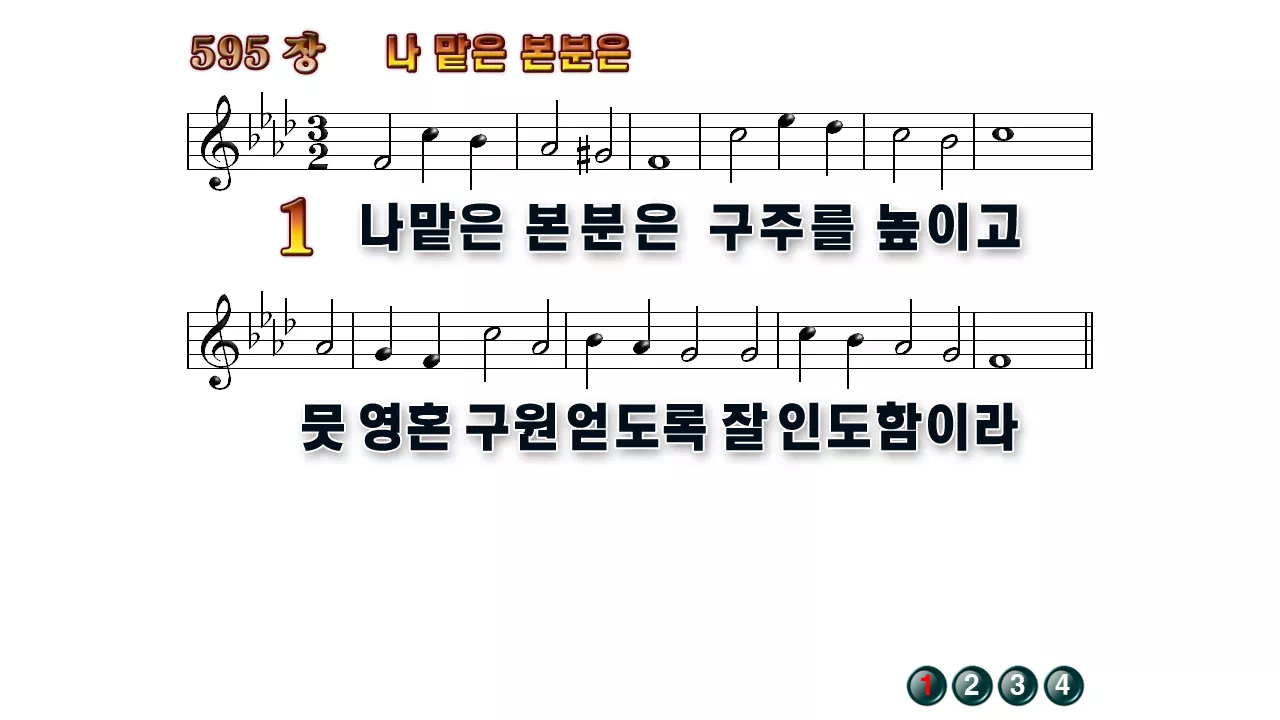 새찬송가 '595장 나 맡은 본분은'16:9 와이드버전으로 편집된 배경 없는 새찬송가 PPT악보입니다.