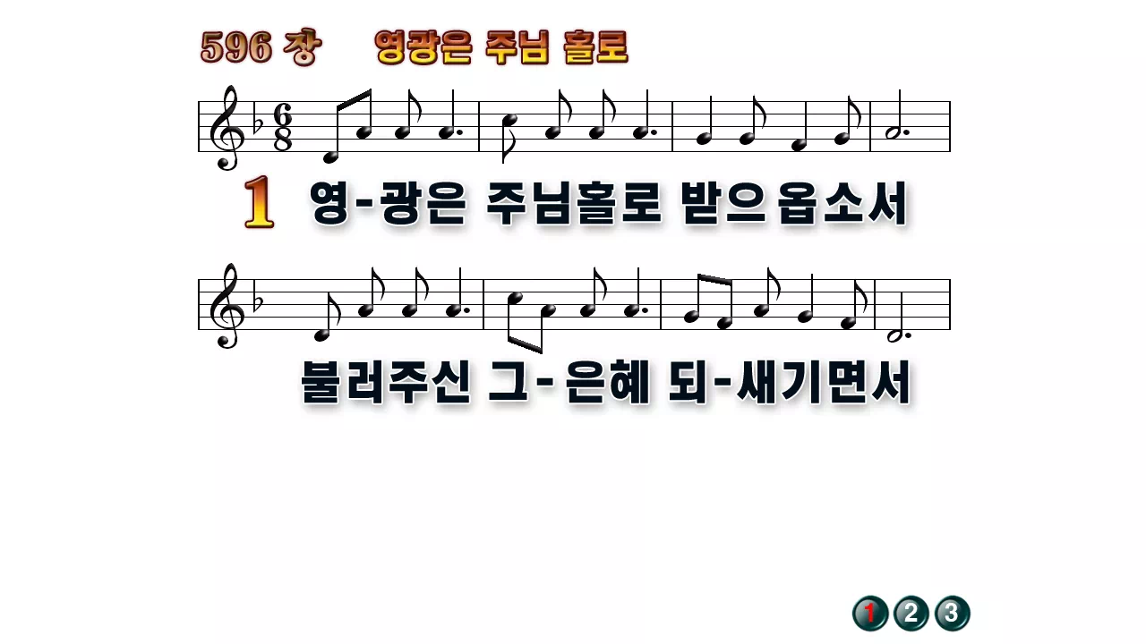 새찬송가 '596장 영광은 주님 홀로'의 16:9 와이드버전으로 편집된 배경 없는 새찬송가 PPT악보입니다.
