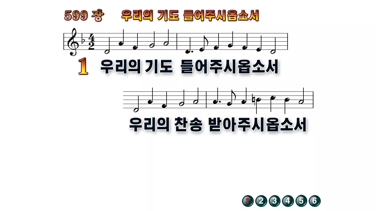 새찬송가 '599장 우리의 기도 들어주시옵소서'16:9 와이드버전으로 편집된 배경 없는 새찬송가 PPT악보입니다.