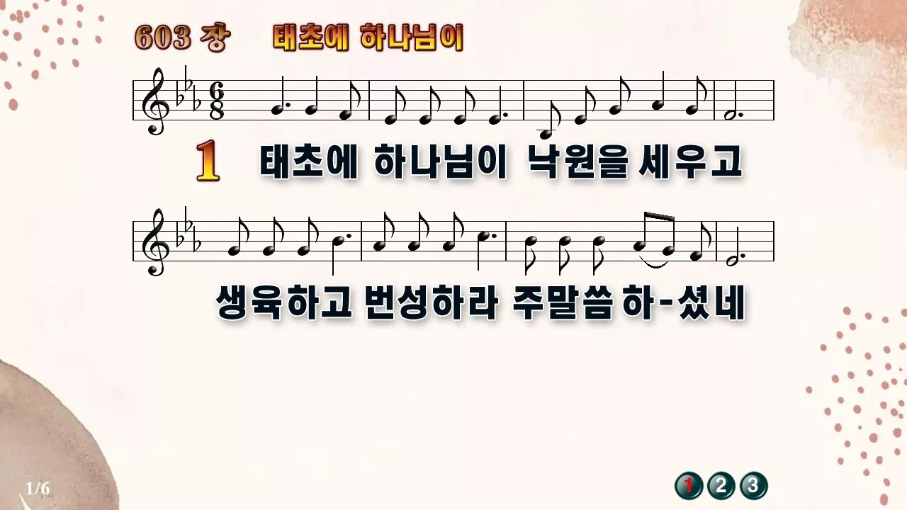 새찬송가 '603장 태초에 하나님이'의 16:9 와이드버전으로 편집된 새찬송가 PPT악보입니다.