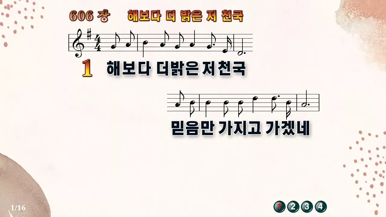 새찬송가 PPT: 606장 해보다 더 밝은 저 천국(16:9/가사/PPT악보/다운로드/배경O)