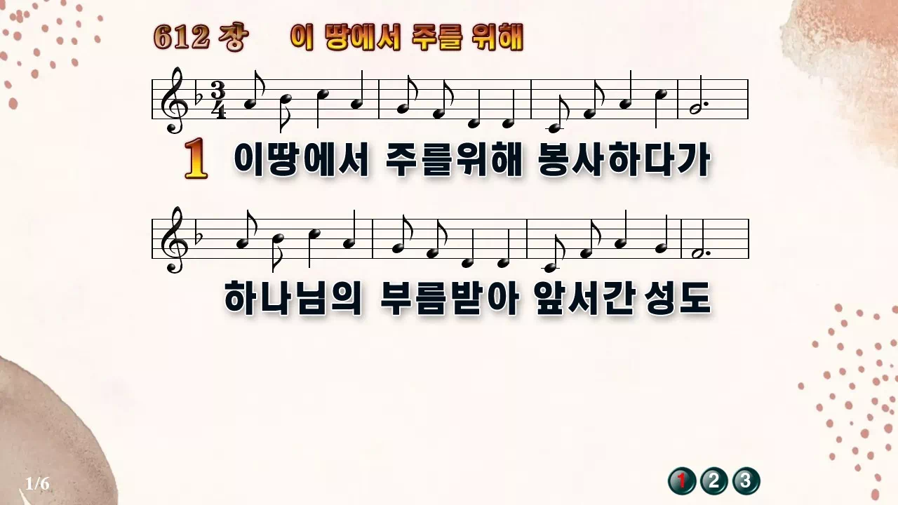 새찬송가 '612장 이땅에서 주를 위해'의 16:9 와이드버전으로 편집된 새찬송가 PPT악보입니다.