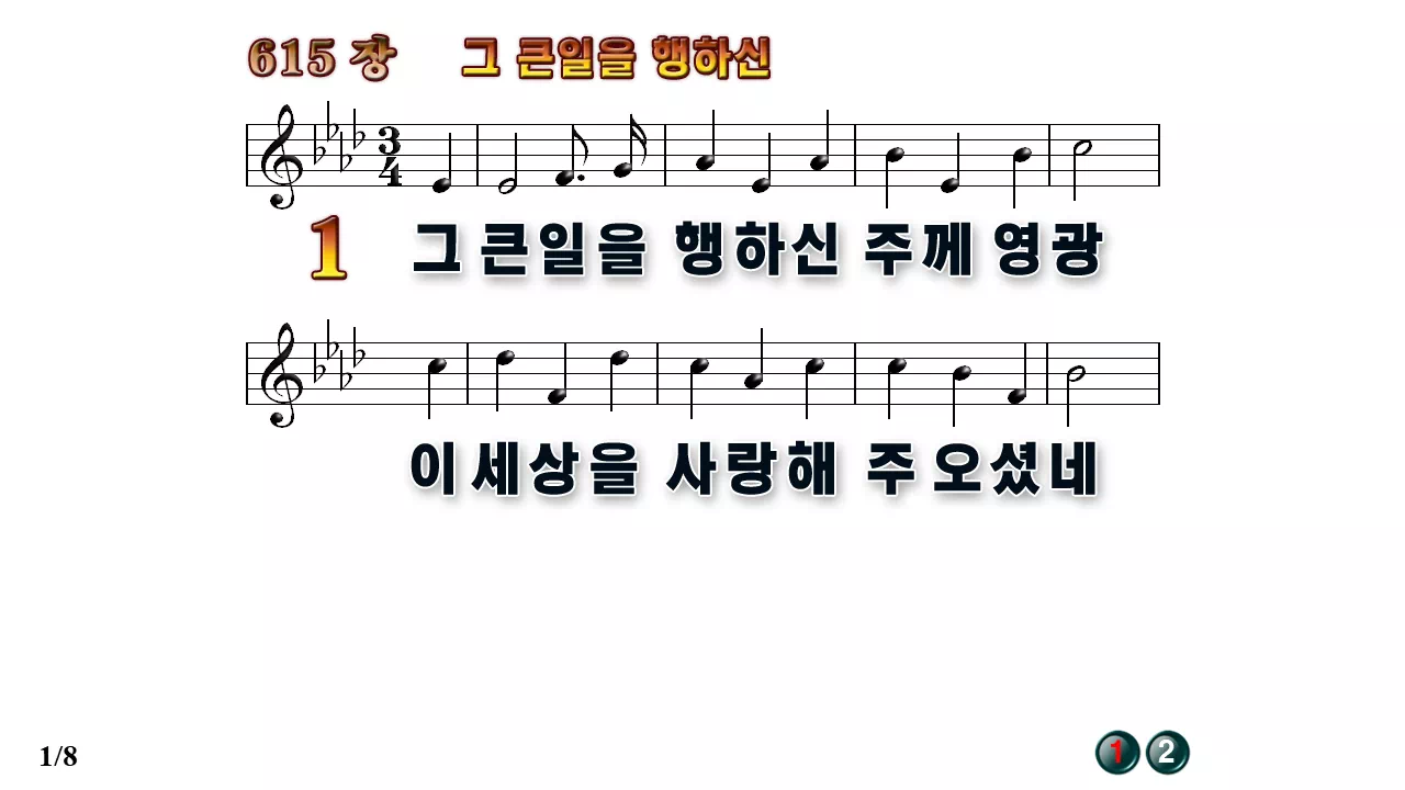 새찬송가 PPT: 615장 그 큰일을 행하신(16:9/가사/PPT악보/다운로드/배경X)