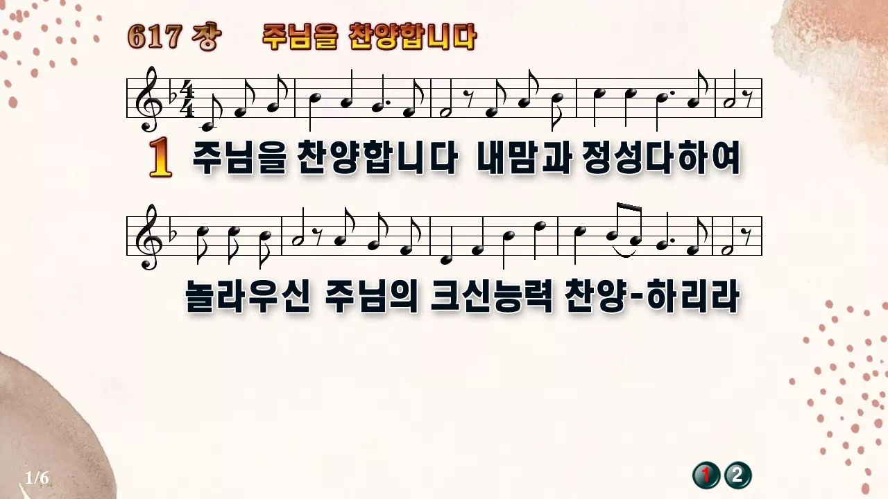 새찬송가 '617장 주님을 찬양합니다'의 16:9 와이드버전으로 편집된 새찬송가 PPT악보입니다.