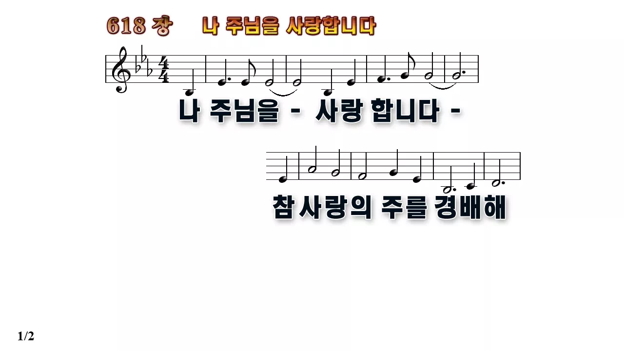 새찬송가 '618장 나 주님을 사랑합니다'의 16:9 와이드버전으로 편집된 배경 없는 새찬송가 PPT악보입니다.