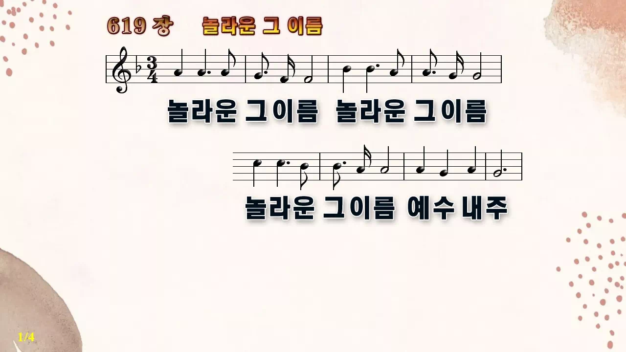 새찬송가 '619장 놀라운 그 이름'의 16:9 와이드버전으로 편집된 새찬송가 PPT악보입니다.