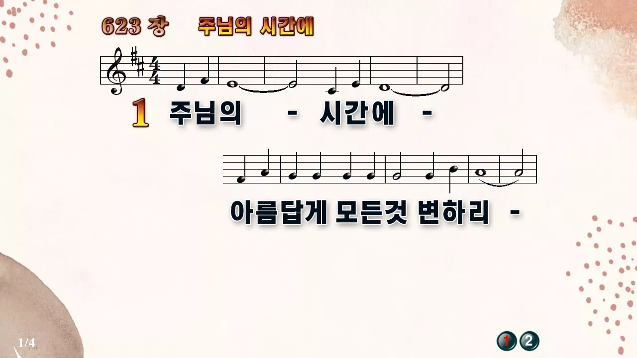 새찬송가 '623장 주님의 시간에'의 16:9 와이드버전으로 편집된 새찬송가 PPT악보입니다.