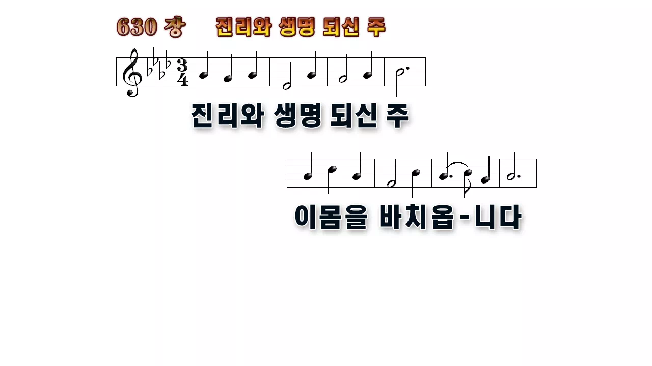 새찬송가 '630장 진리와 생명 되신 주'의 16:9 와이드버전으로 편집된 배경 없는 새찬송가 PPT악보입니다.