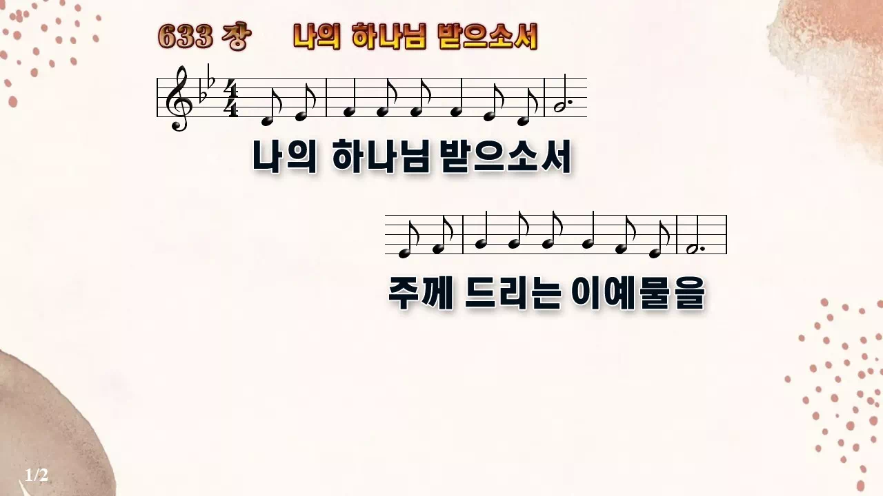 새찬송가 '633장 나의 하나님 받으소서'의 16:9 와이드버전으로 편집된 새찬송가 PPT악보입니다.