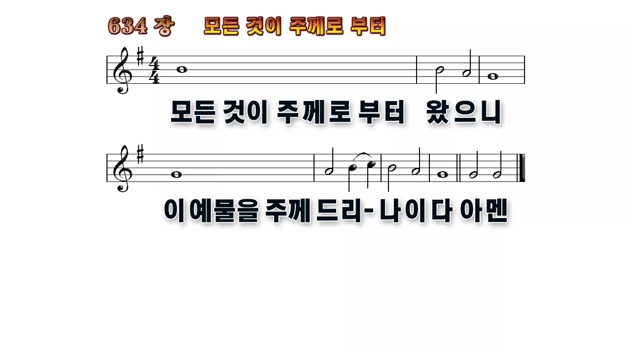 새찬송가 '634장 모든것이 주께로 부터'의 16:9 와이드버전으로 편집된 배경 없는 새찬송가 PPT악보입니다.