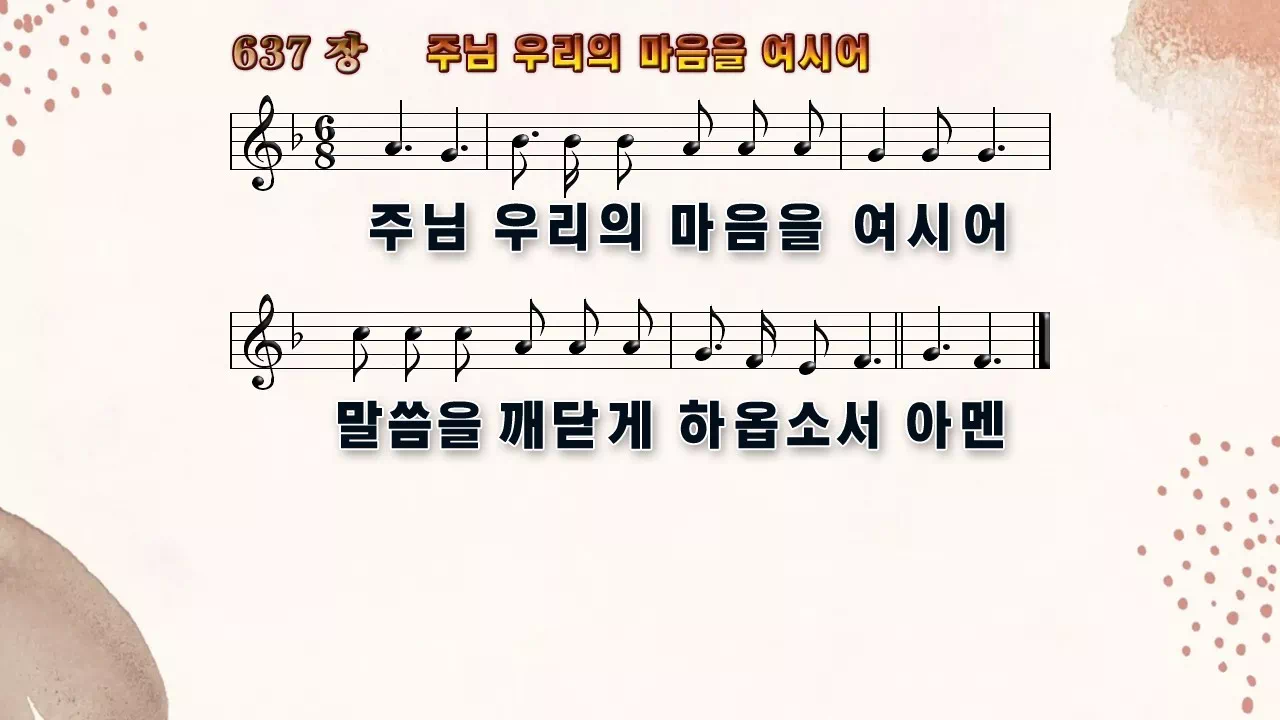 새찬송가 PPT: 637장 주님 우리의 마음을 여시어(16:9/가사/PPT악보/다운로드/배경O)