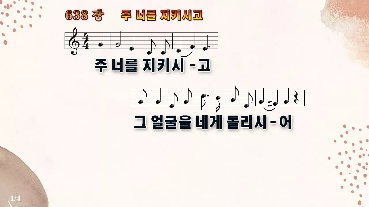 새찬송가 '638장 주 너를 지키시고'의 16:9 와이드버전으로 편집된 새찬송가 PPT악보입니다.