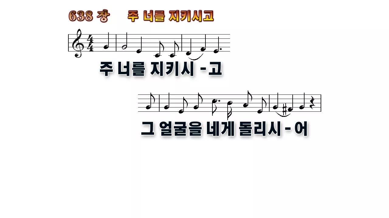 새찬송가 '638장 주 너를 지키시고'의 16:9 와이드버전으로 편집된 배경 없는 새찬송가 PPT악보입니다.