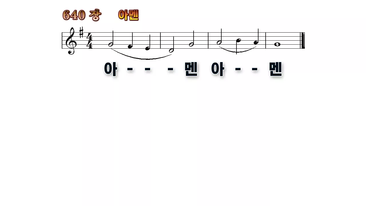 새찬송가 '640장 아멘(두 번 아멘)'의 16:9 와이드버전으로 편집된 배경 없는 새찬송가 PPT악보입니다.