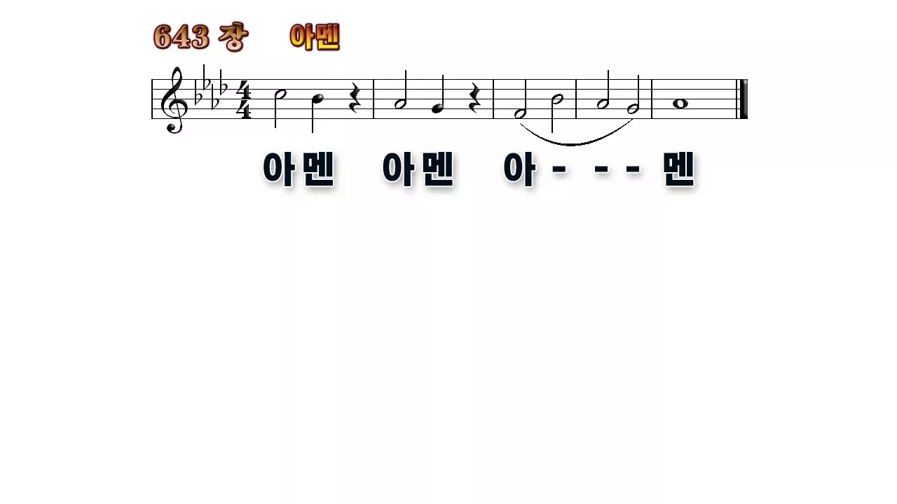 새찬송가 '643장 아멘(세 번 아멘)'의 16:9 와이드버전으로 편집된 배경 없는 새찬송가 PPT악보입니다.