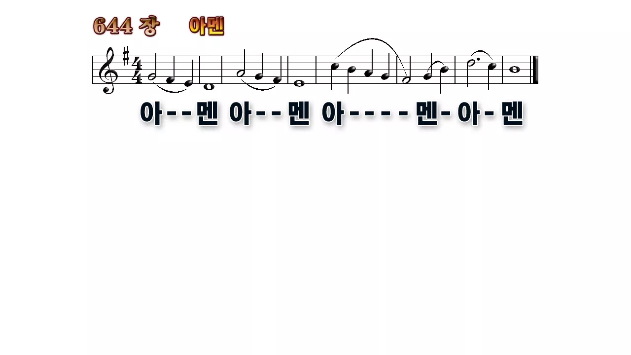새찬송가 '644장 아멘(네 번 아멘)'의 16:9 와이드버전으로 편집된 배경 없는 새찬송가 PPT악보입니다.