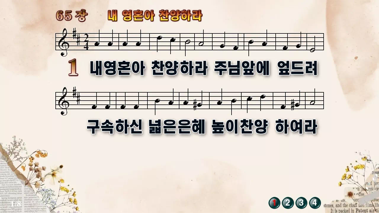 새찬송가 PPT: 65장 내 영혼아 찬양하라(16:9/가사/PPT악보/다운로드/배경O)