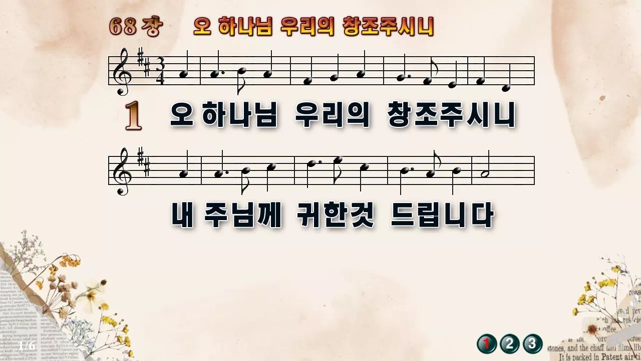 새찬송가 '68장 오 하나님 우리의 창조주시니'의 16:9 와이드버전으로 편집된 새찬송가 PPT악보입니다.