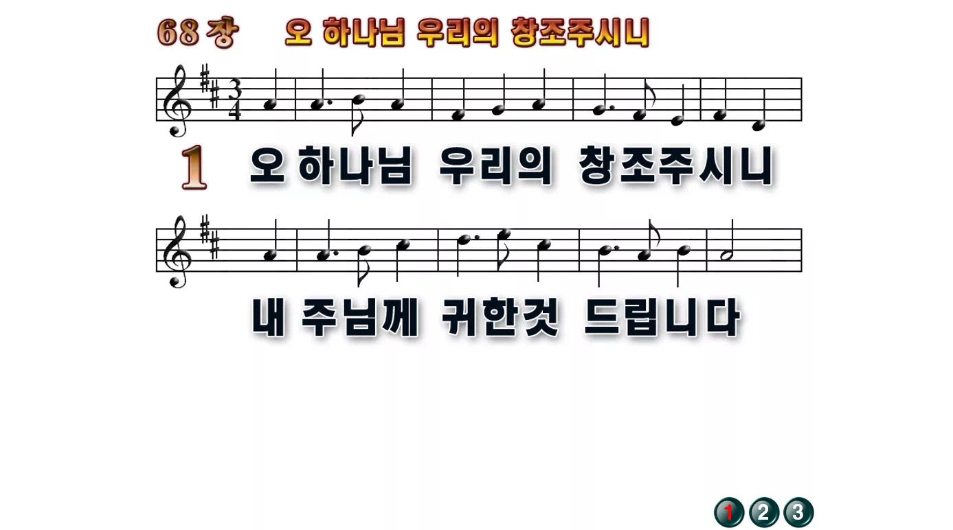 새찬송가 PPT: 68장 오 하나님 우리의 창조주시니(16:9/가사/PPT악보/다운로드/배경X)
