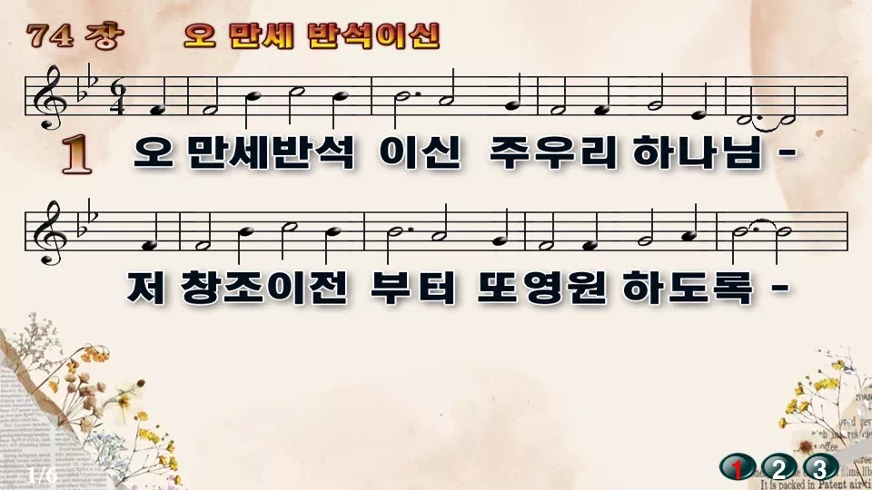새찬송가 '74장 오 만세 반석이신'의 16:9 와이드버전으로 편집된 새찬송가 PPT악보입니다.