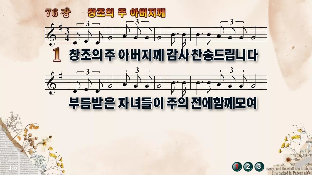 새찬송가 '76장 창조의 주 아버지께'의 16:9 와이드버전으로 편집된 새찬송가 PPT악보입니다.