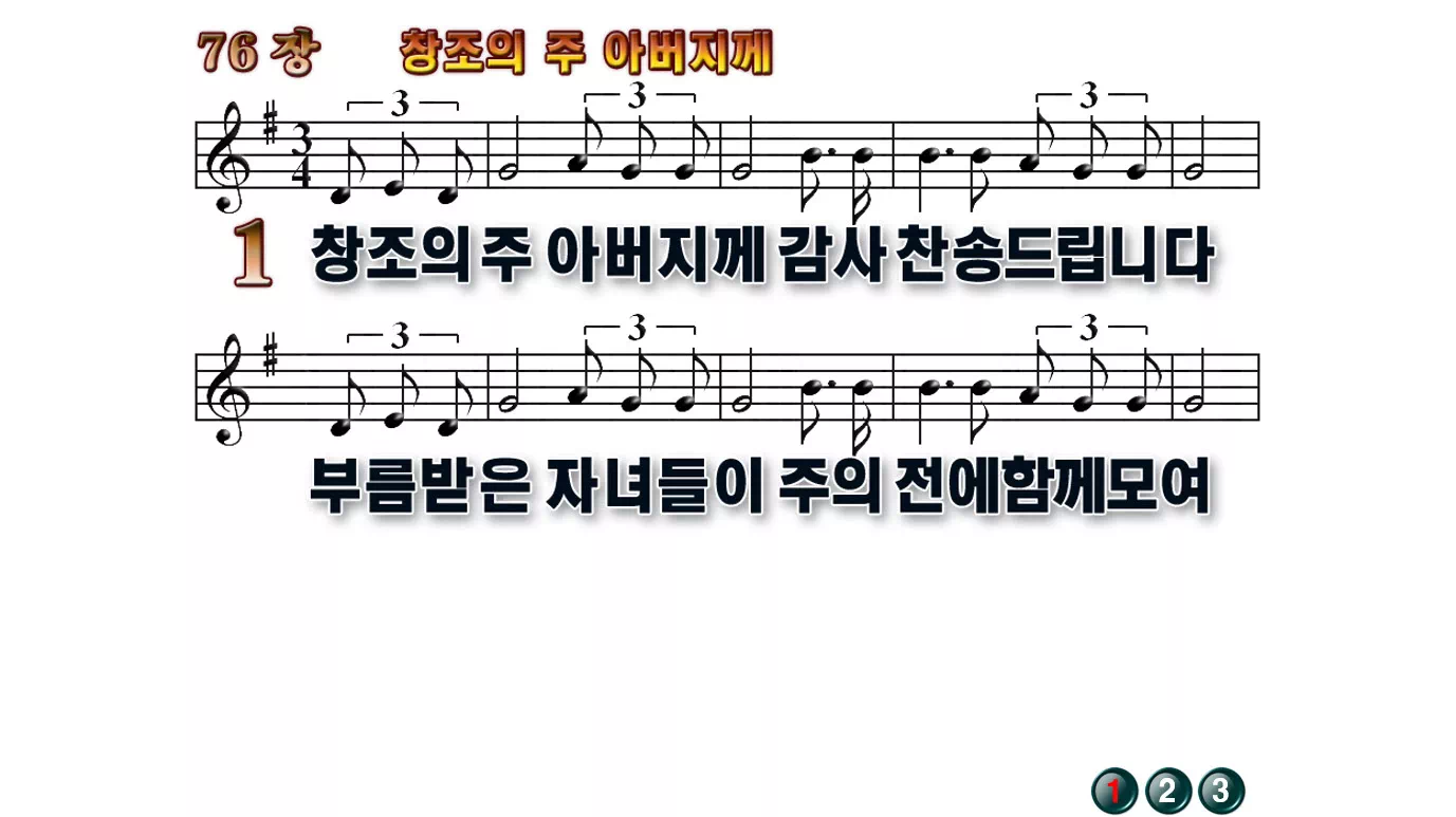 새찬송가 PPT: 76장 창조의 주 아버지께(16:9/가사/PPT악보/다운로드/배경X)