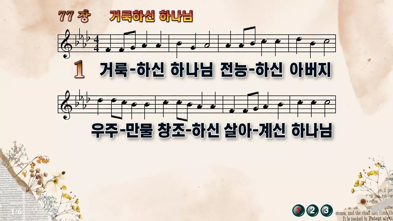 새찬송가 PPT: 77장 거룩하신 하나님(16:9/가사/PPT악보/다운로드/배경O)
