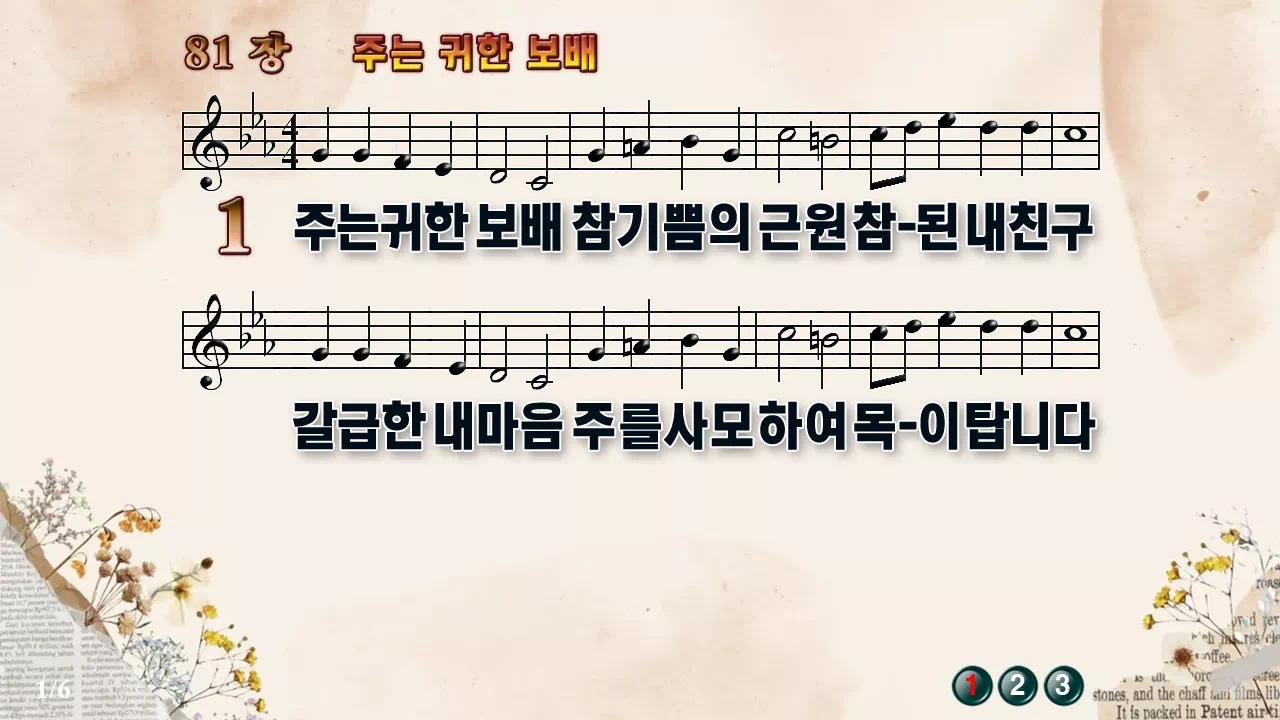 새찬송가 '81장 주는 귀한 보배'의 16:9 와이드버전으로 편집된 새찬송가 PPT악보입니다.