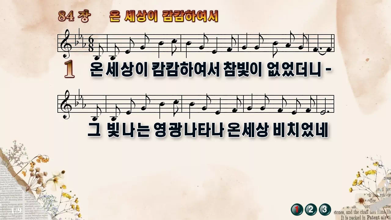 새찬송가 '84장 온 세상이 캄캄하여서'의 16:9 와이드버전으로 편집된 새찬송가 PPT악보입니다.