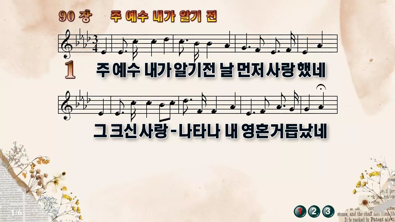 새찬송가 '90장 주 예수 내가 알기 전'의 16:9 와이드버전으로 편집된 새찬송가 PPT악보입니다.