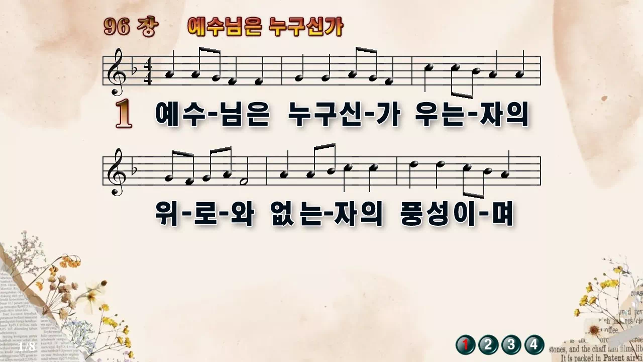 새찬송가 '96장 예수님은 누구신가'의 16:9 와이드버전으로 편집된 새찬송가 PPT악보입니다.