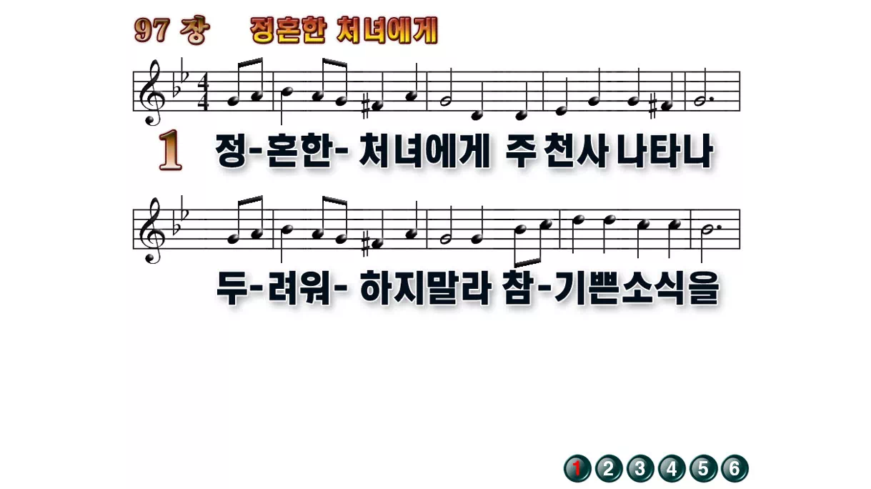 새찬송가 '97장 정혼한 처녀에게'의 16:9 와이드버전으로 편집된 배경 없는 새찬송가 PPT악보입니다.