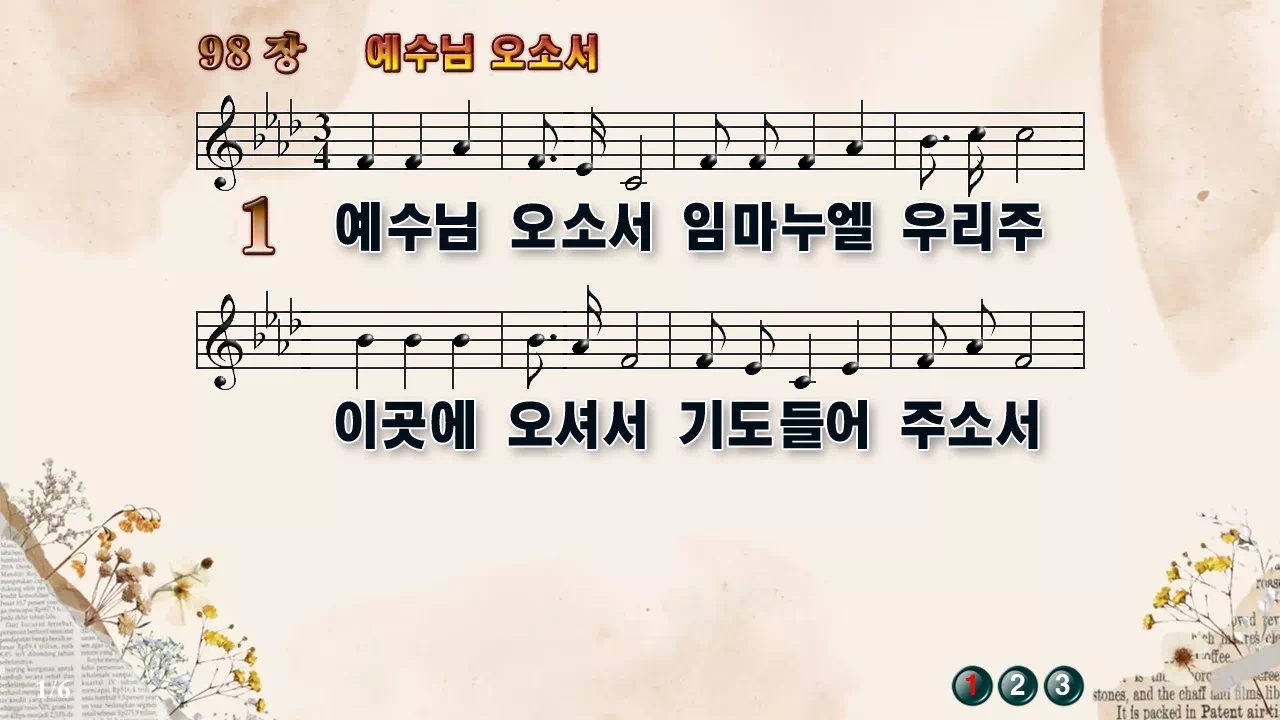 새찬송가 '98장 예수님 오소서'의 16:9 와이드버전으로 편집된 새찬송가 PPT악보입니다.