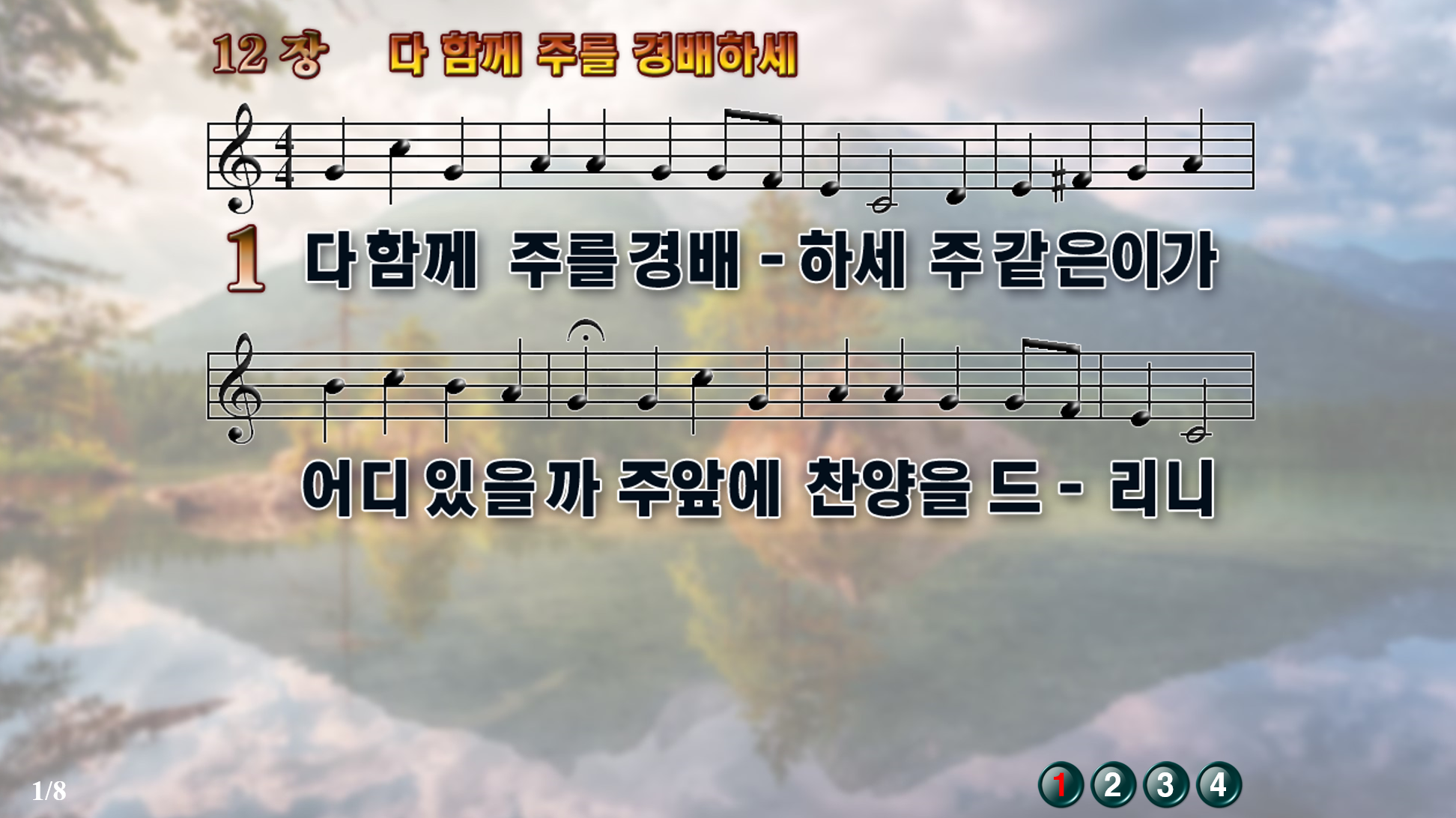 새찬송가PPT: 12장 다 함께 주를 경배하세(16:9/가사/PPT악보/배경O)