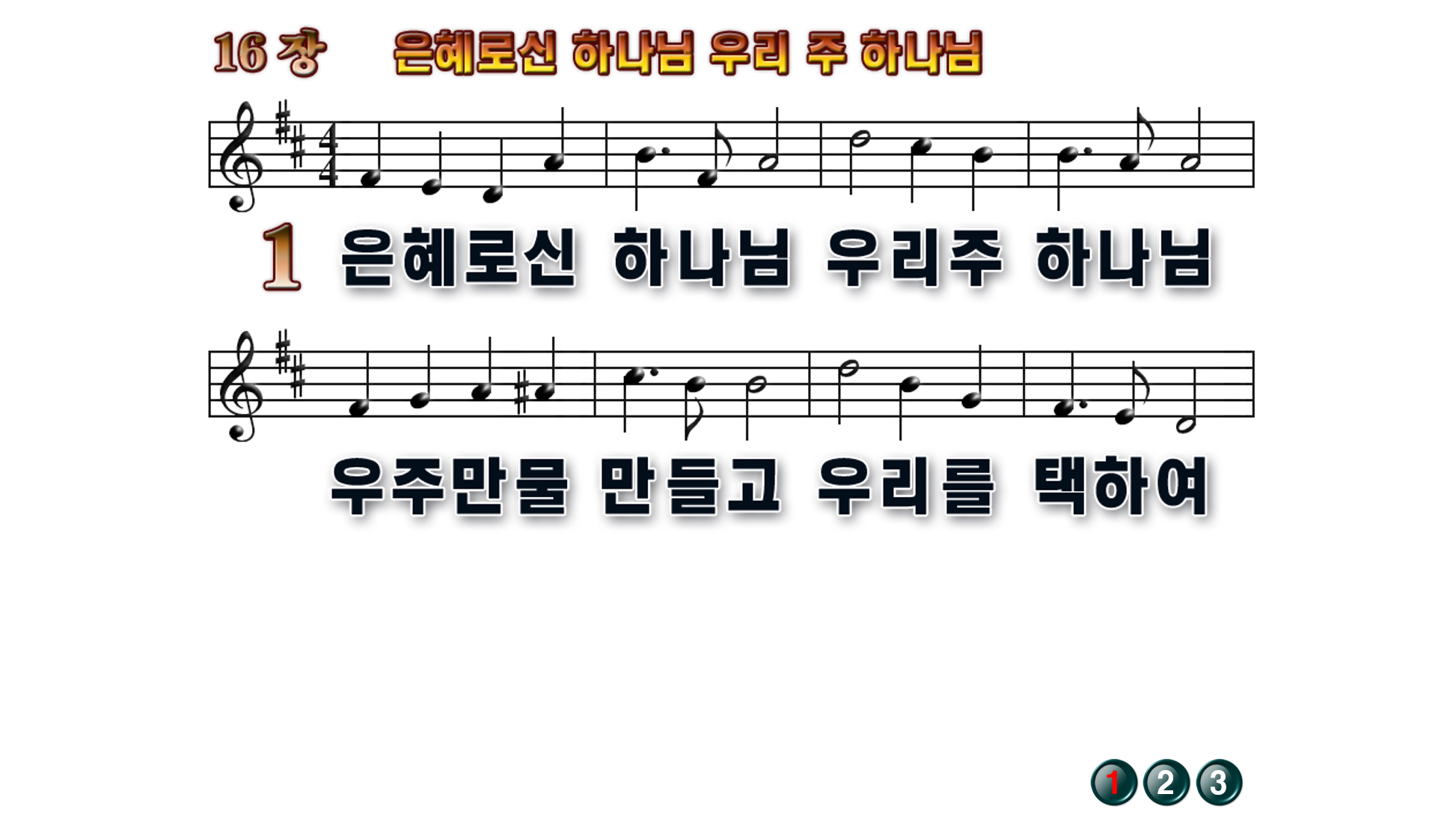 새찬송가PPT: 16장 은혜로신 하나님 우리 주 하나님(16:9/가사/PPT악보/배경X)