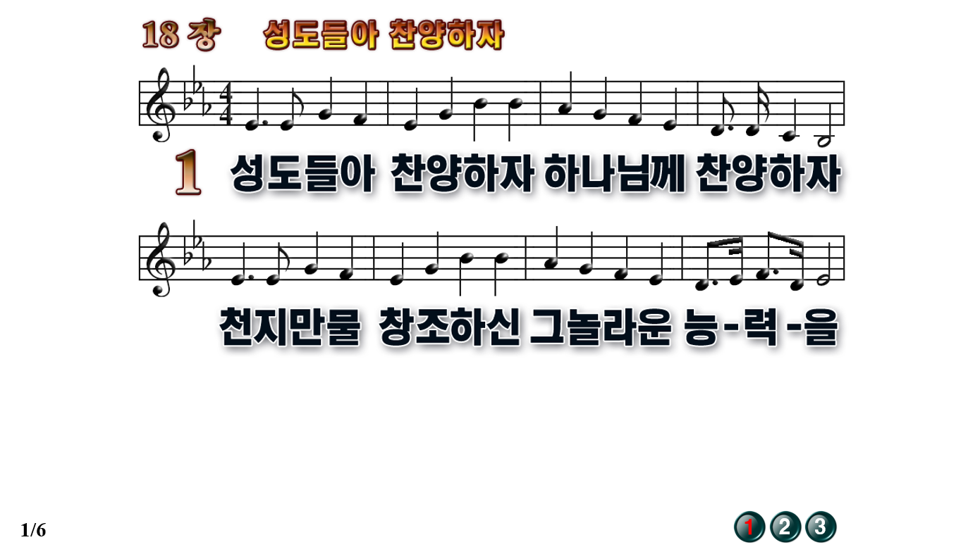 새찬송가PPT: 18장 성도들아 찬양하자(16:9/가사/PPT악보/배경X)